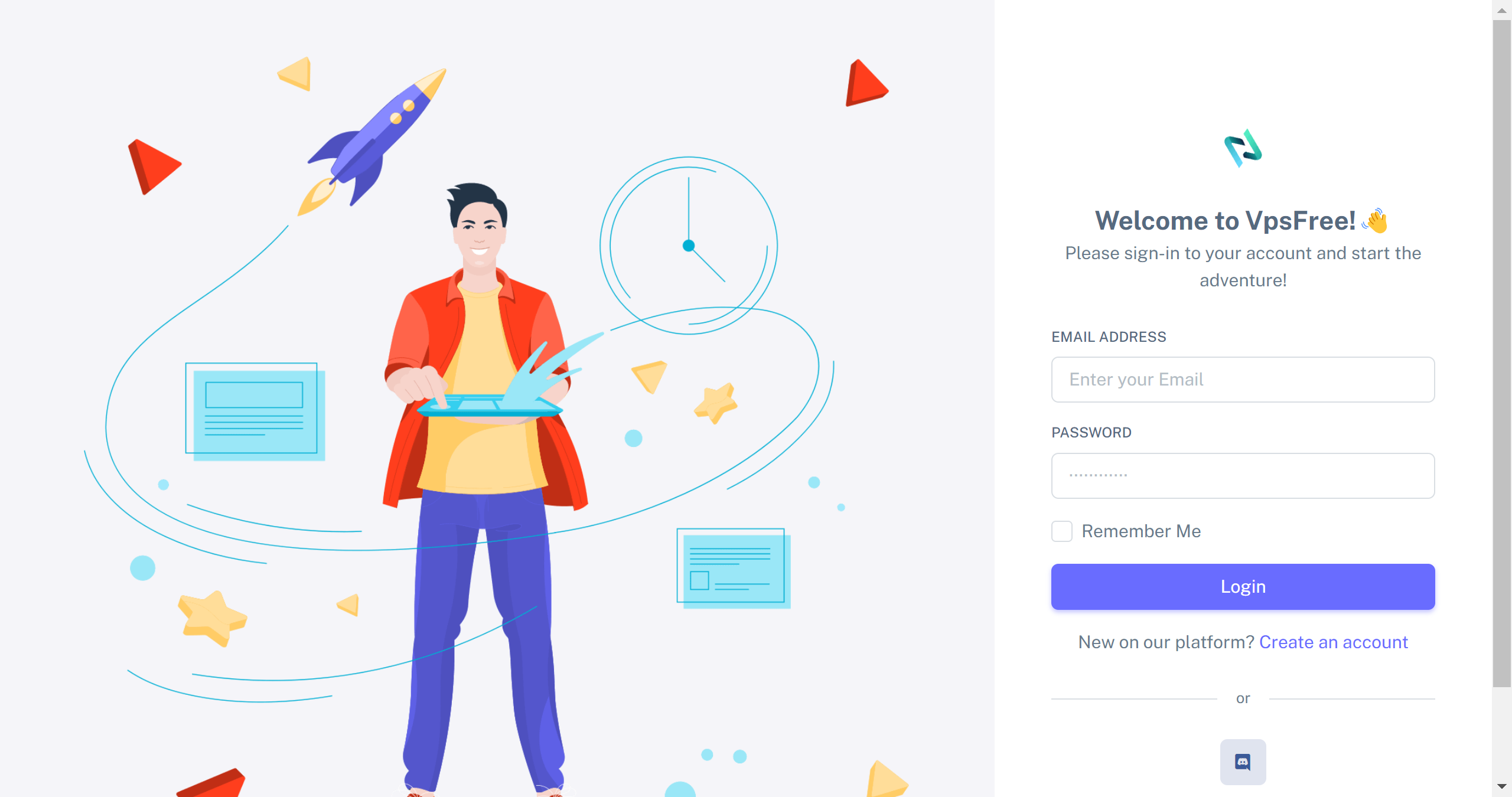 - 打开这个网页:https://client.vpsfree.es/ ,点击底下的 Discord 图标登录