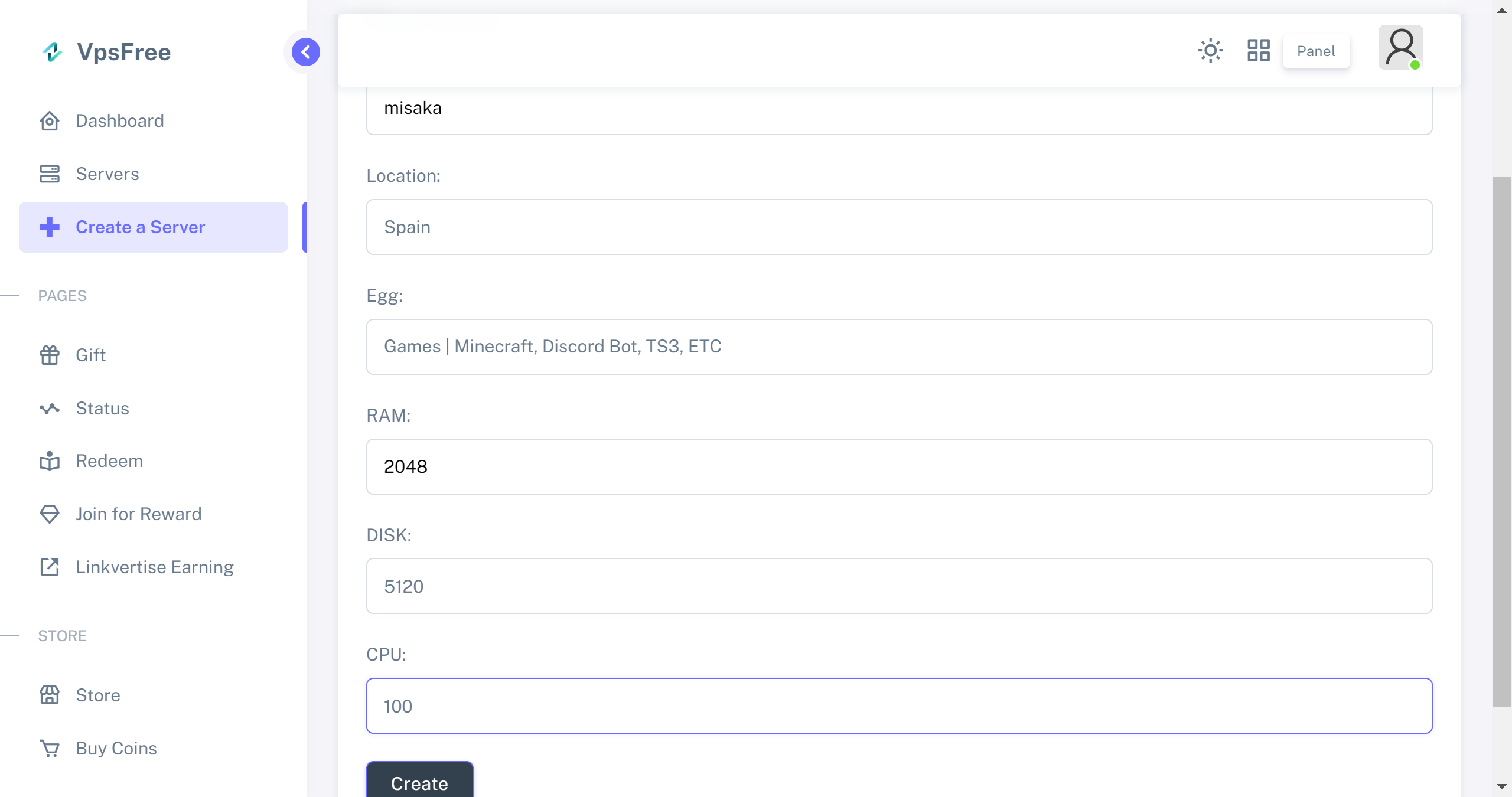 - 转到“Create a Server”页面,按照下图提示填写配置