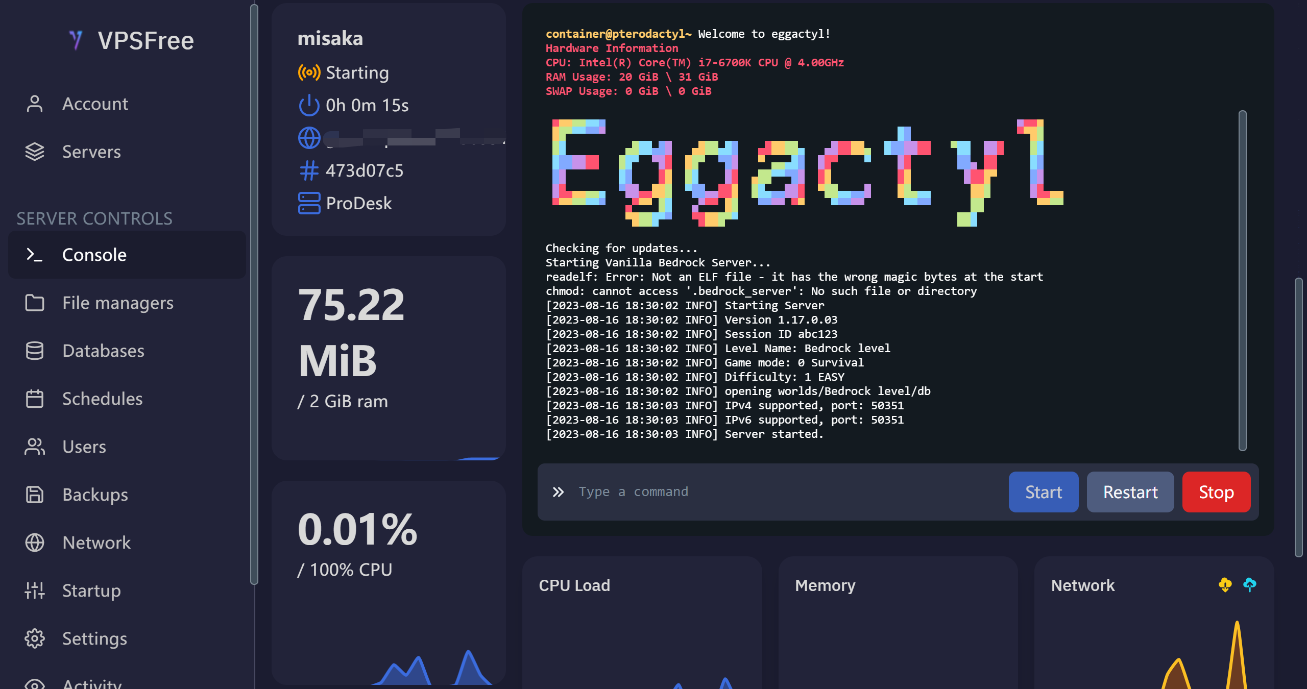- 转到“Console”页面,点击“Start”启用机器。待看到如下图提示时即可代表部署成功